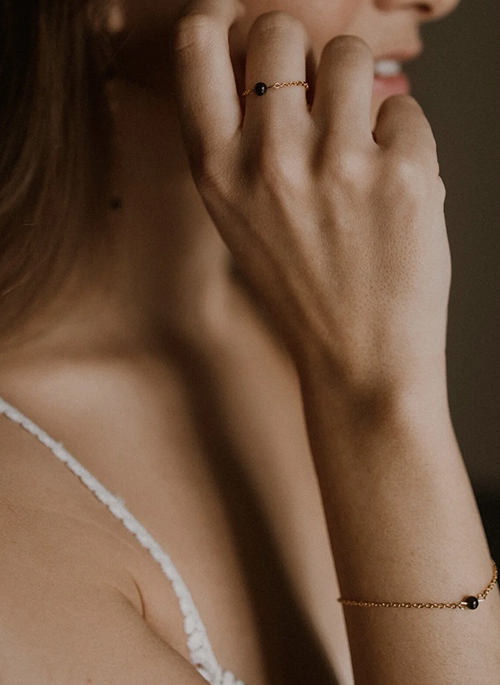 Gold-plated brass chain bracelet with a tourmaline gemstone. Details: Handmade in France. Nickel and lead free. Eco-friendly production. Adjustable size.