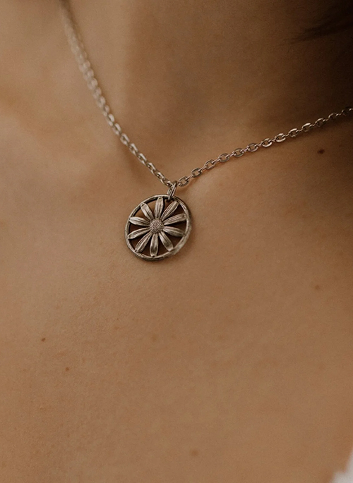 Silver-plated brass daisy necklace. Details: Handcrafted in France from an embossed piece. Guaranteed nickel- and lead-free. Eco-responsible manufacturing