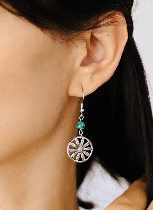 Silver-plated brass. Handmade from stamped designs produced in France using traditional methods. Details: Guaranteed nickel- and lead-free. Eco-friendly manufacturing. Length 5 cm
