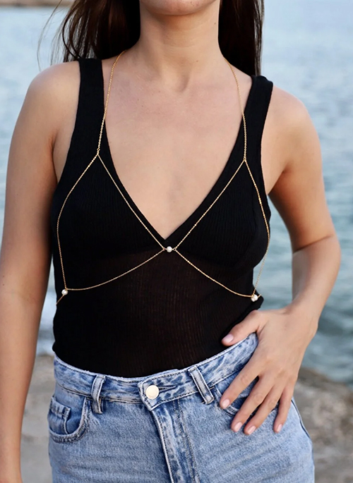 Edith body chain in 24k gold-plated brass with freshwater pearls.Details: Handmade in FranceGuaranteed nickel- and lead-freeEco-responsible manufacturing
