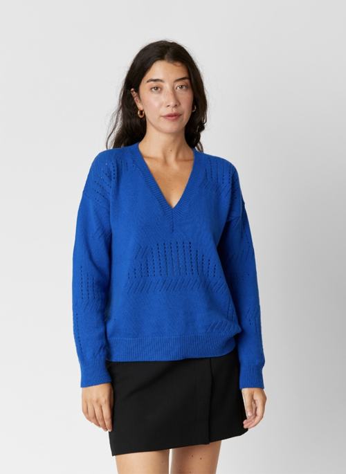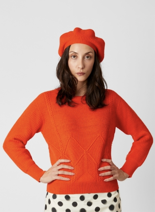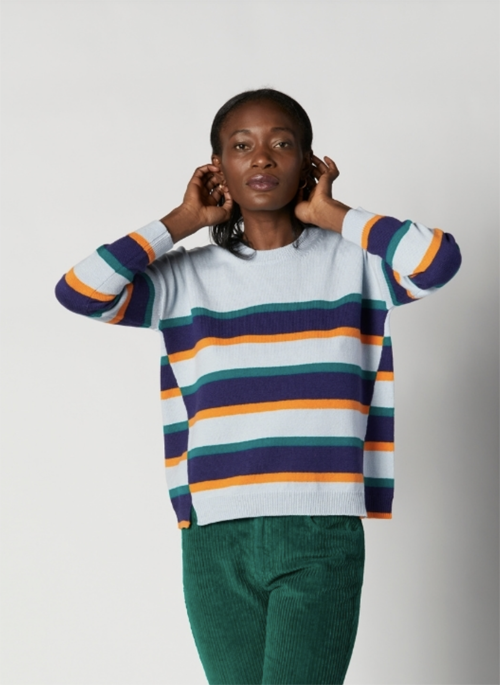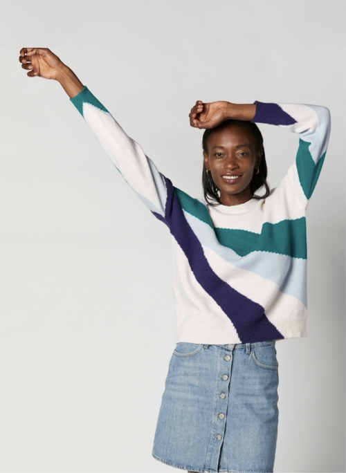 For our first collection, we offer pieces knitted in French merino wool , sweaters and accessories for women. From the breeding of the sheep to the knitting of the models, everything is made between France and Italy .