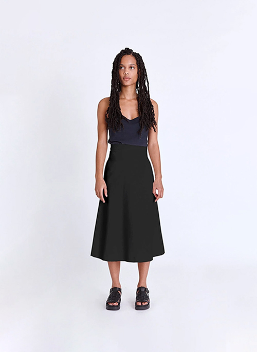 Details: A-line skirt High waistedBelow-the-knee lengthInvisible zip at sideHook and bars and internal button opening at side waistband