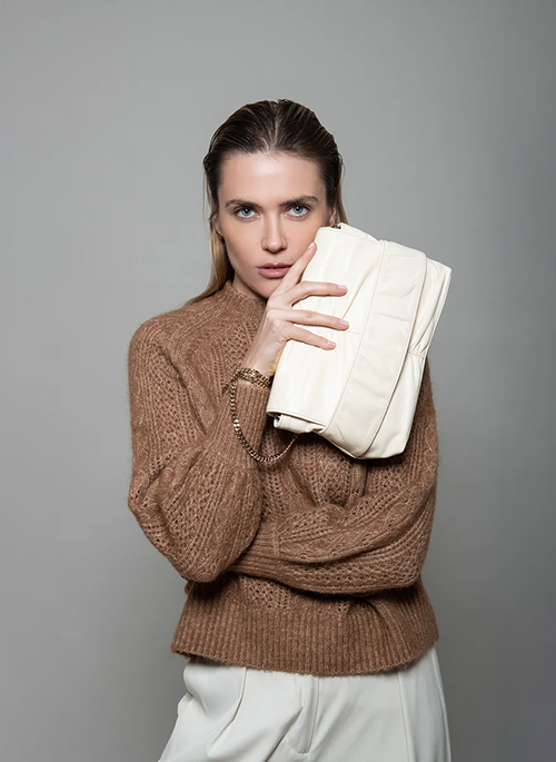 Indulge in timeless elegance with the Cream Apolline Ruched Shoulder Bag.Its soft,neutral color makes it a versatile accessory that complements any outfit. Crafted from upcycled nappa leather, this eco-conscious bag offers both style and sustainability. The Apolline comes with two interchangeable straps, a luxurious leather shoulder strap and a stylish metal gourmet chain shoulder strap, offering versatile carrying options to suit your look.Details: