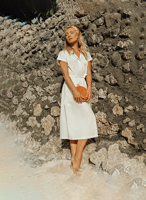 Love is in the air. Embark on a new journey with this elegant and comfortable-wear Arya Safari Midi Shirt Dress. Feel the softness of its woven 100% natural Linen fabric with button-down closure and linen belt. Completed with 2 spacious pockets on each sides. Sewn by local artisans in Bali who work from the comfort of their homes while nurturing their families.