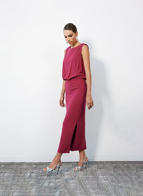 Simple, sleek, and timeless. The Athena Dress in draped modal jersey offers an ultra-flattering silhouette with a soft hand feel. With subtle details that make a statement, it's the definition of effortless dressing.Details: