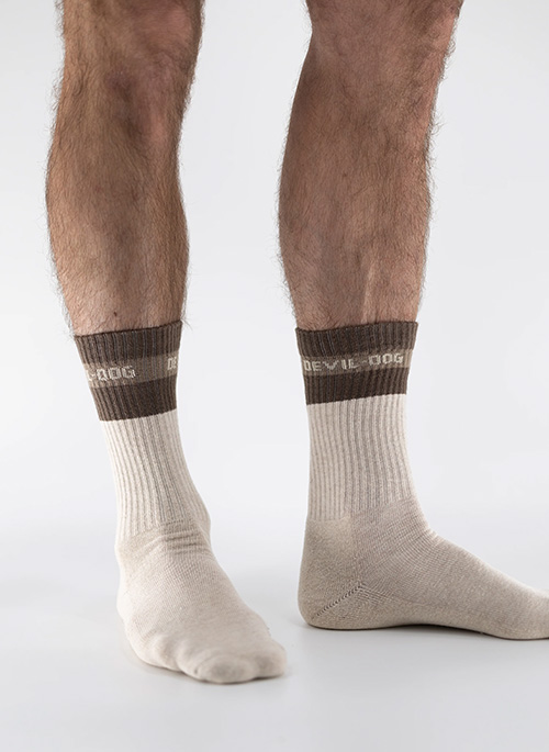 Half Calf Socks-NaturalDetails: Natural- Khaki stripeComfortable stretch ribJacquard knit logo bandOne Size Fits MostHalf calf length sock Imported