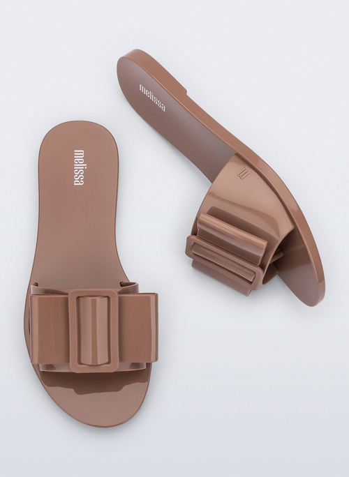 Fashion has many genre's which gives many plenty ways to express. Romance is skyrocketing in today's trend, with its delicate and feminine shapes. Introducing Melissa Babe, a delicate built slide featuring single strap that ensures a perfect fit. The detailing gives it a touch of style that no other.