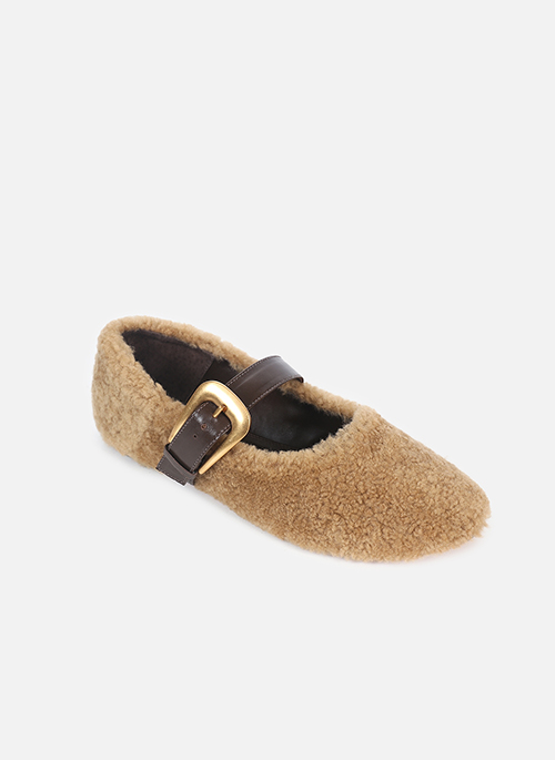 The Beca ballet flat is made of fur, with leather detailing and a metal buckle, and features a sophisticated design that combines texture and elegance. The model has an anatomical insole and leather sole, providing stability, lightness, and comfort while walking, making it ideal for creating modern and refined looks with personality.