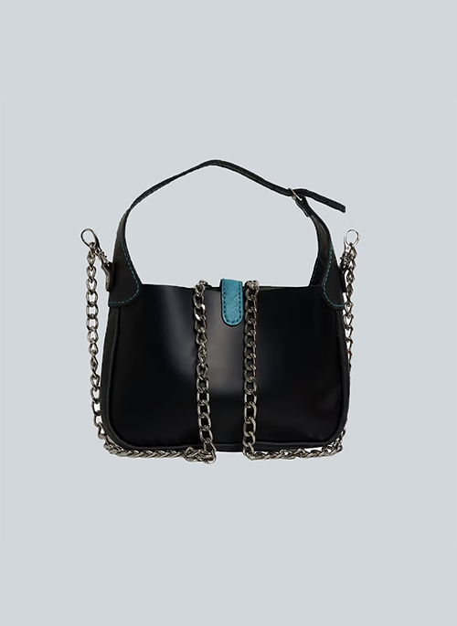 - Compact, composed, Riviera-chic. Carry it two ways: a soft top handle or a detachable high-quality metal chain.
