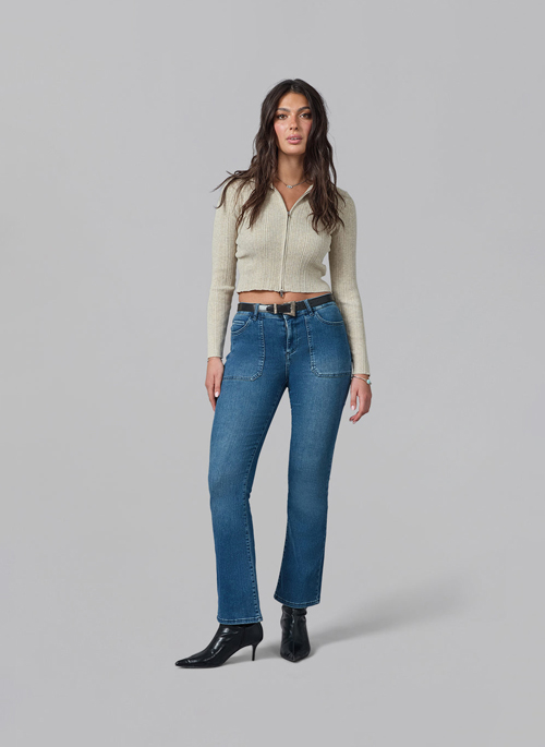 Billie is our high-rise boot cut jean that remains a tried and true style of the Lola Jeans catalogue. The Billie in Dim Sky 2 features utilitarian inspired patch pockets and is a classic medium Blue wash.Details: