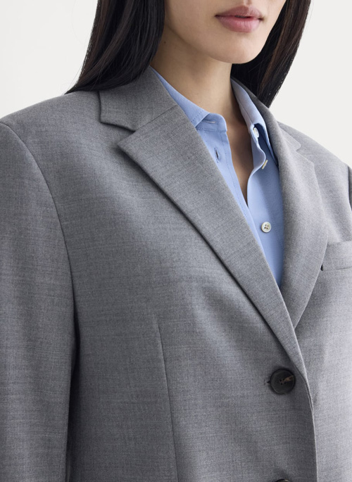 This modern blazer features a lapel and notch collar, in a single-breasted silhouette, with front darts and side panels to give it an effortless, updated shape. Made with RWS-certified wool with a touch of stretch for comfort, it adds instant polish to any look. Style it with matching pants or mini skirt for a fresh approach to suiting or go lower-key with denim or wide-leg pants.