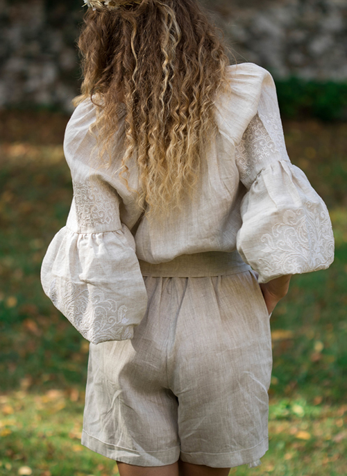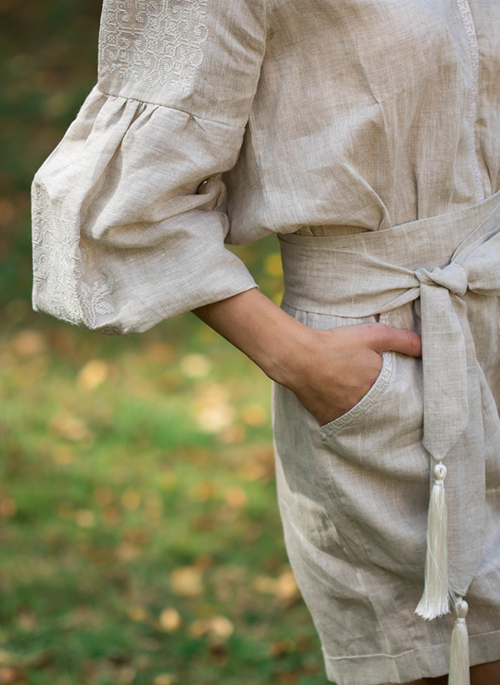 Our models are made by hand and according to your measurements exclusively. In the case of a made-to-measure order, we will ask you to provide us with your precise measurements and indicate them when placing your order. Our clothes are loose. It is up to us to adjust them based on your measurements. Long sleeves, can be fixed at the elbow. Linen colour and embroideries are available according to your choices The manufacturing time is 1 month (it is an artisanal product which requires time).