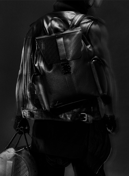 The Bohlin backpack is crafted from ultra-soft, hammered grain leather and carbon fiber, creating an extremely refined and timeless look.