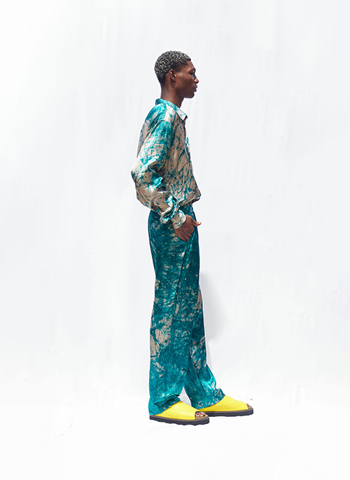 Crack batik design shirt with long cuff sleeves, a full collar, and front button-down closure.Details: Color: Green and beigeFabrication: Silk cotton blend