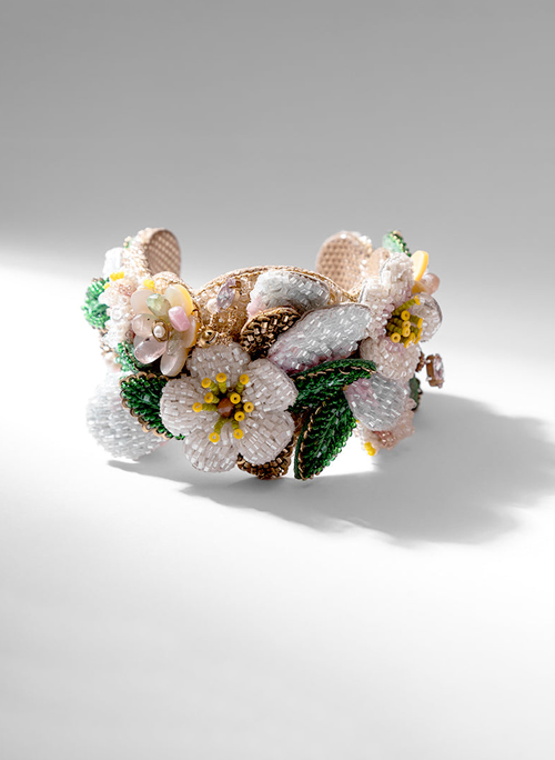 Bracelet with hand-embroidered embellishments.
