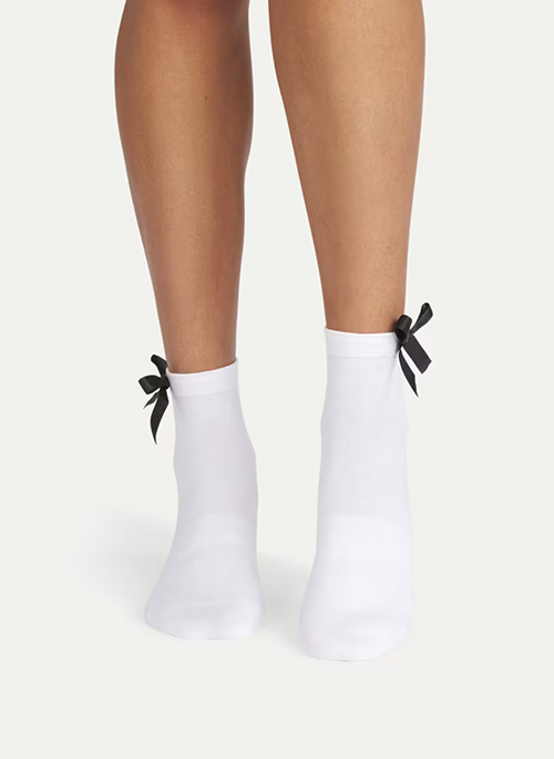 The coquette quarter of your dreams. This thinner sock looks extra femme but feels far from flimsy. Designed with our signature built-in arch support, Seamless Toe, and a secure cuff that resists sliding down (even with a satin bow sitting on top of it).Details: