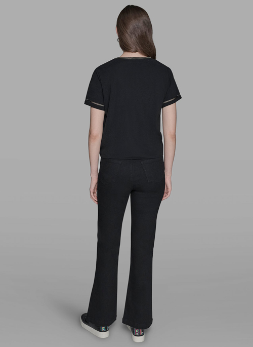 Details:Short Sleeve V-Neck Crystal Bow-Embellished TopPulls onUnlinedCrepe-knit: 100% polyesterHand wash cold inside outImported