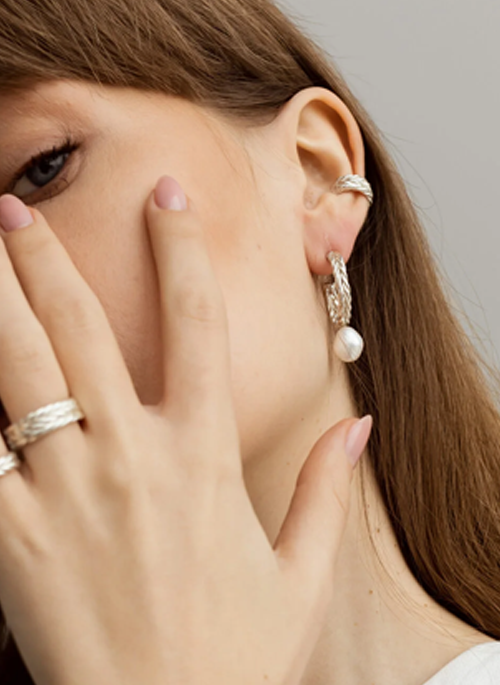 Silver Braid with Pearl Earrings