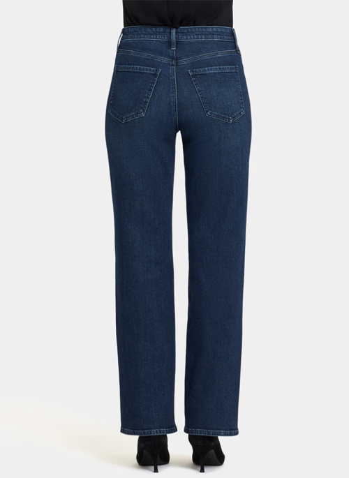 NYDJ's Brooke Loose Straight Jeans with Rhinestones will make you look as good as you feel. This vintage-inspired jean is designed to sit a little lower on the waist and features a relaxed straight fit through the legs as well as sparkling rhinestone detail along the side seams. It can also be worn as a high-rise style pulled up to the natural waist. Finished with five-pocket styling, zip fly and button closure. Louvre Sapphire is a classic medium-dark indigo wash with minimal hand sanding. This jean is made with earth-friendly methods that result in reduced consumption of water, chemicals and/or energy.