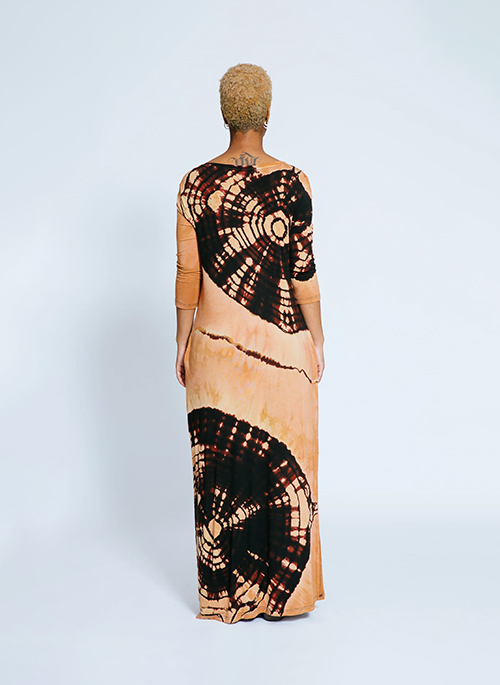 We upcycled our Camryn stretch bamboo jersey scoop-neck column dress by reverse-dyeing with natural dyes from the Itneg indigenous tribe in the Philippines, in collaboration with local artist Angie Correa of These Hands are Made of Gold. Whether for lounging at home or working from home (#wfh!), or paired with a belt and boots, this basic style can take you from casual to going out very easily.Details: