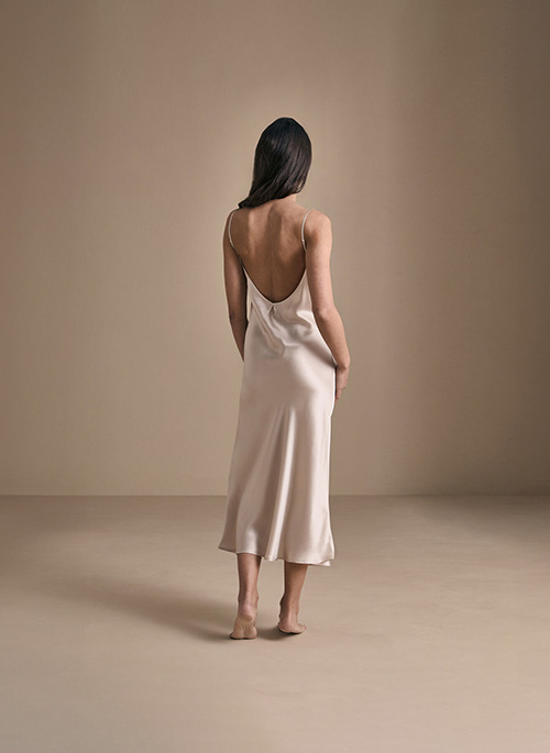 The Cascade Long Nightgown from Frette creates indulgent comfort as it is crafted from 100% pure silk. In a perfect neutral champagne shade and is finished with thin straps, and a v-neck the Cascade Long Nightgown lends sophistication to any night in.