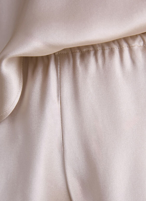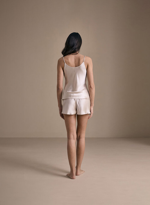 The Cascade Pyjamas Set from Frette creates indulgent comfort as it is crafted from 100% pure silk. The champagne shade is the perfect neutral and the Casade Pyjamas Set features a v-neck and thin straps.