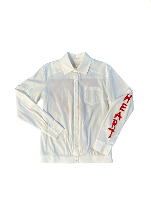 In support of circular fashion & circular economy, we upcycled our Cassidy 2-way convertible shirt in crisp and comfy reclaimed fine stretch poplin with hand-painting, in collaboration with local creative Poncho the Artist. Hand-painted, no two are exactly alike! The shirt is two shirts in one - just button up for long sleeve and unbutton the pieces to make short sleeves. The banded bottom adds a design twist, while the shirred band at the back ensures a comfortable fit. Wear it as a shirt or overlay as a jacket. And did we mention it's Unisex? Women's S = Men's XS, Women's M = Men's S, Women's L = Men's M, Women's XL = Men's L, Women's XXL = Men's XL. Sweet.Details: