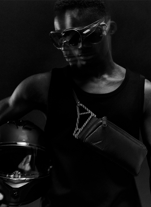 The Caster shoulder bag is crafted from ultra-soft, grained leather and carbon fiber for an extremely refined and timeless look.