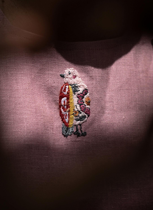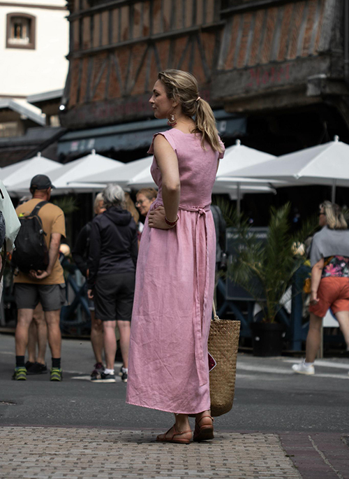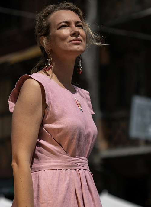 100% organic linen; 100% handmadeDetails: High waistHand embroideredHandmade wooden buttonsAnkle length180 g /m2Washed linen