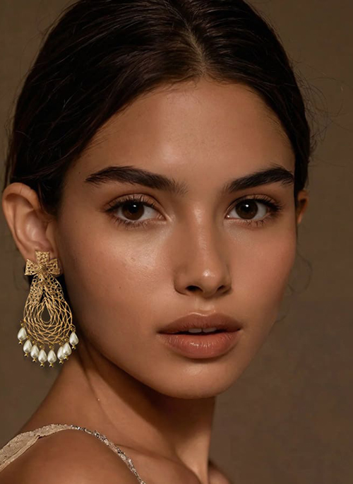 Statement earrings handmade in bronze threads, using filigree technique. 24k gold plated. Mix and match earrings that can be used in two different ways. Easily remove the dangling drops and you can use the bows as everyday studs. Crystal pearls hanging.