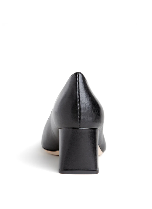Dressy black patent leather pump. Classic and elegant almond toe pump ideal for work or night wear. Low block heel. Memory foam insole for comfort.Details: