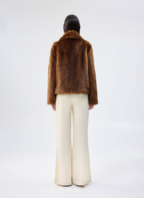 Minimalism meets confidence in the Courage Jacket. Longline sleeves and short-pile faux fur combine to create a streamlined silhouette that is as understated as it is versatile.