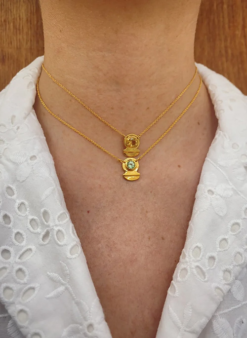 Harnessing the powerful symbolism of the classic crescent shape, this medallion radiance is perfected through its stunning gemstone setting . The combination of shapes are delicately combined for a piece that can be worn on its own or layered with any of our collection.Details: