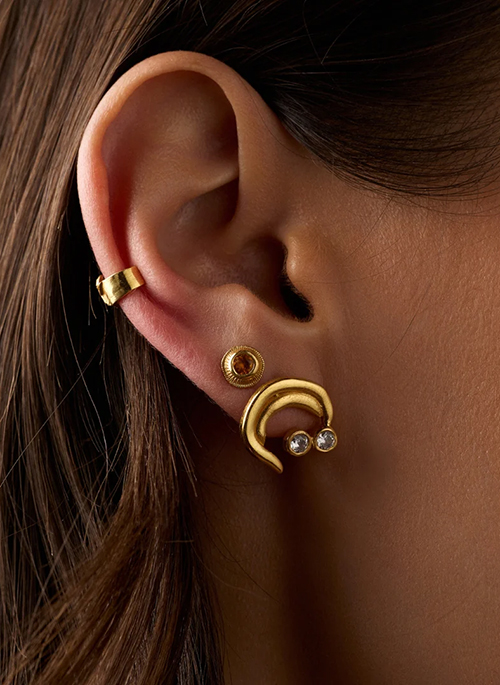 Small but full of presence. The Daphne Studs bring a touch of classic elegance with a modern edge — a versatile design that works in a first piercing or stacked higher for a layered look. Crafted from recycled metals and responsibly sourced stones, these studs are proof that sustainability never goes out of style.Details: