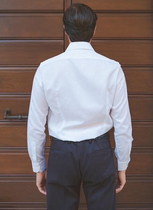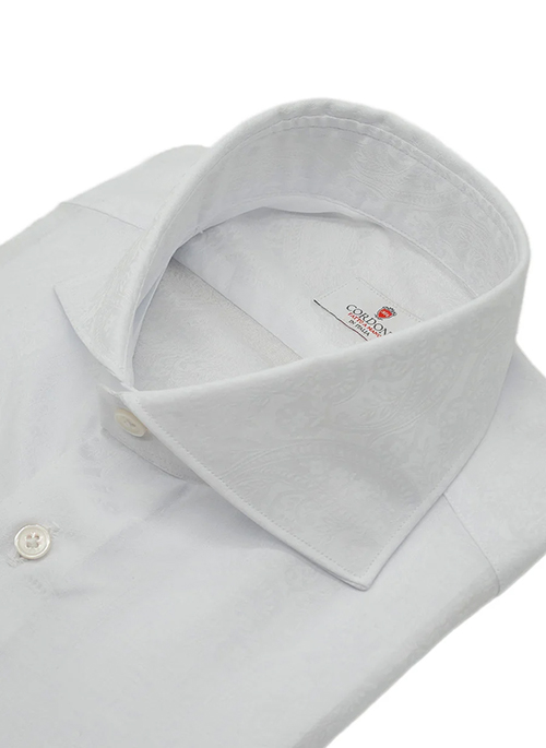 Dobby Shirt White Pasley is a shirt in double twisted popeline 120/2 , handcrafted in Italy, with the tailored pattern of the shifted sleeve and enriched with mother-of-pearl button and handmade buttonhole trim.Details: