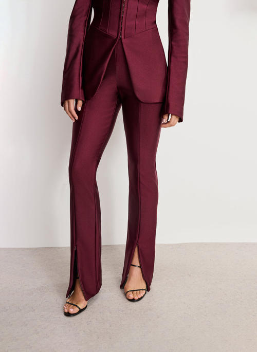 These pull-on pants were made to shine. Designed with seams that add shape, front slits, and back waist darts for a flawless fit, they’re sleek, bold, and made to turn a sidewalk into a runway.