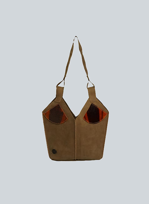 - Twin “shell” panels with oval base; single shoulder strap. 100% all natural materials.