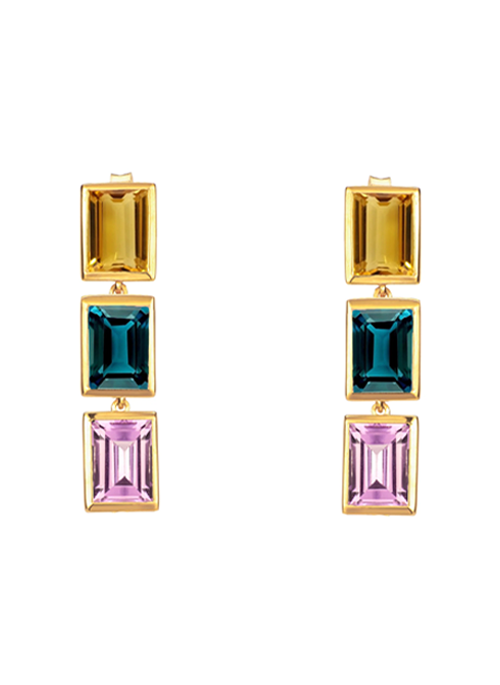 Featuring Citrine, London Teal Topaz and Purple Amethyst, all 6x8mm octagon cuts, these drop earrings have a total length of 3.3cm and really capture the movement of the stones. This earrings have a combined total carat weight of 9.73CT.