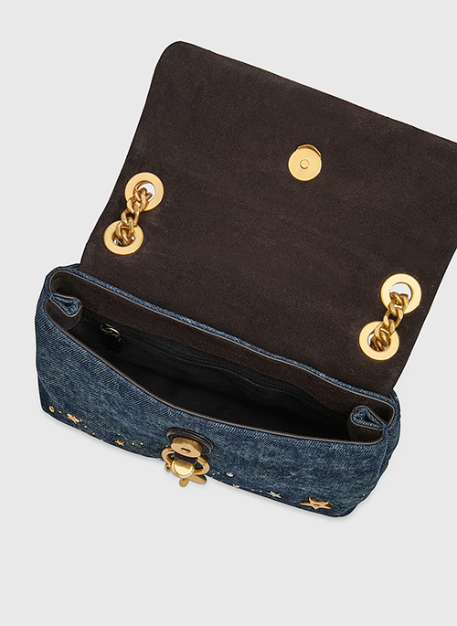 The Edie Crossbody can handle whatever your day brings. Accented with glimmering celestial studs, this crossbody style features a chain link strap and signature dog-clip hardware.