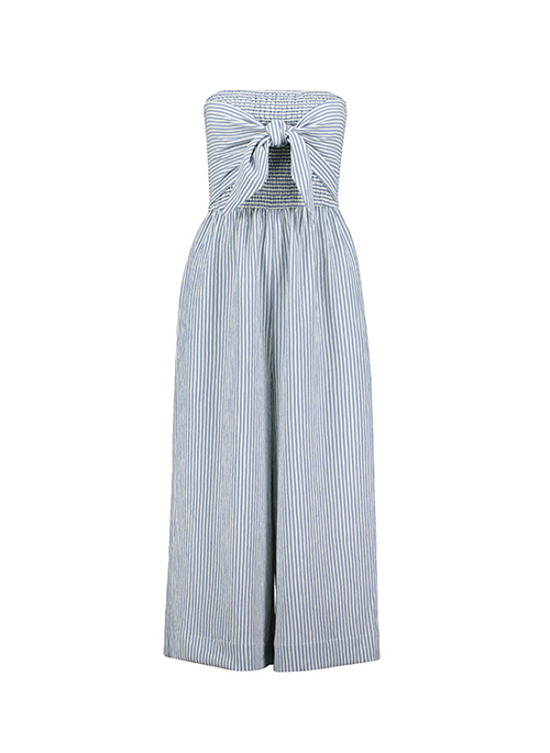 Some things are as easy as a jumpsuit. The Elva Tie Front Jumpsuit features a tie front detail over its form-fitting smocked bodice, finished with wide leg silhouette and side pockets. Slip on some sandals and you’re ready out the door.Details: