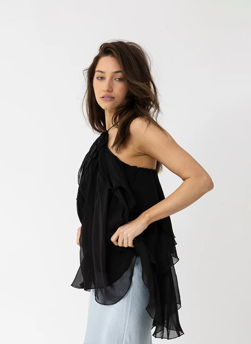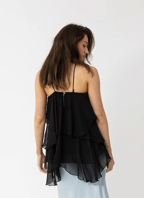THE EMPIRE TOP: The Pinnacle of Tops. The Empire Top is numerous petal like floaty Layers of beautiful fabric all pulled together with an unassuming Rosette at the neckline. Bound straps give a very flattering Neckline. This one can be worn with a Strapless Bra. Fully lined and a button back fastening.Details: