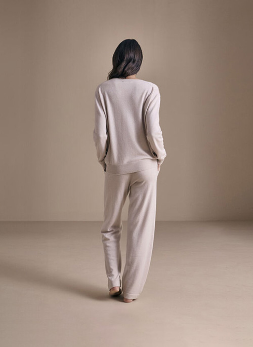 The Flow Jogging Set from Frette provides an incredibly cosy and chic loungewear look. Sophisticated and stylish, this set is crafted from cashmere, features a v-neck, ribbed neckline, sleeve cuffs, and a jogger-style trouser.