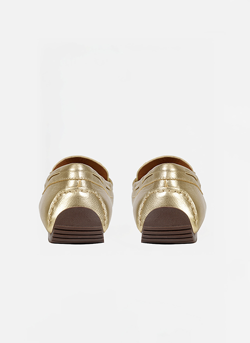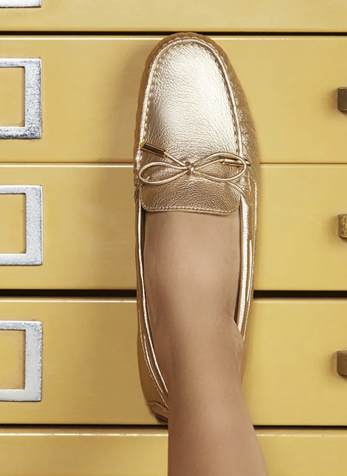 The Francis moccasin is an elegant and versatile shoe, crafted from a combination of metallic and tumbled nappa leather, high-quality materials that provide durability and style. The upper features an applied bow and a side cutout on the vamp, adding a touch of charm and distinction to the shoe. With a round toe, the moccasin provides comfort and space for the toes, maintaining a classic and timeless design. The latex sole offers flexibility and grip while walking, ensuring comfort during use. The front lacing closure with metal tips provides a secure and personalized fit, allowing you to adjust the moccasin to your preference.