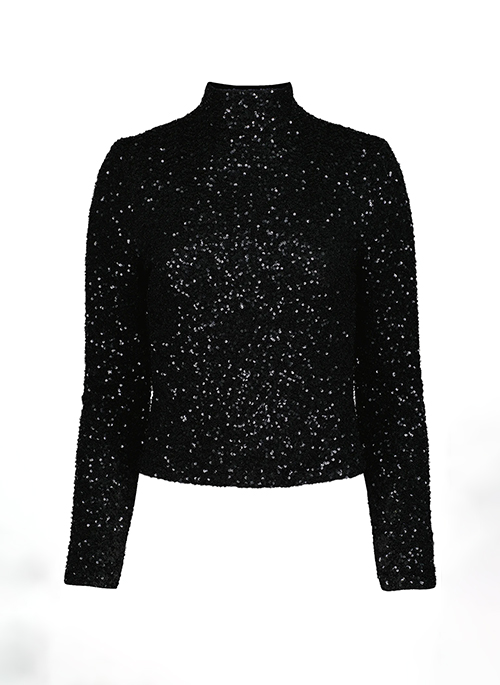 Our Sublime Funnel Neck is crafted in a sequin with a figure-flattering silhouette. This top works well with a variety of looks, from tailored pants and heels to leather skirts or your favorite jeans.