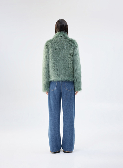 A celebration of texture and elegance, the Fur Delish Jacket blends a structured silhouette with distinctive fabric combinations. The straight stand collar and long sleeves evoke understated luxury, making this jacket a statement piece for contemporary layering.