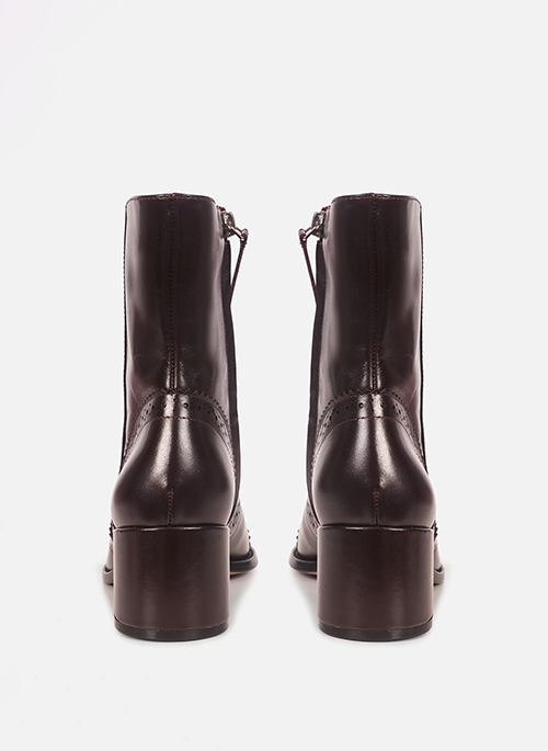 The Giu boot is made of leather, offering a sophisticated and striking look with a glossy finish. The short-shaft model features classic cutouts and perforated details on the upper, known as brogues, which enhance the design and add personality to the product. It has a medium-thick heel, which ensures comfort and stability for daily use, an internal zipper closure, and a leather sole that provides a premium finish, greater durability, and better breathability, elevating the product's quality.