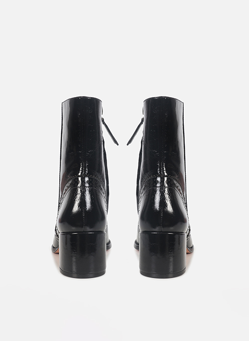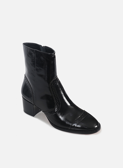 The Giu boot is made of leather, offering a sophisticated and striking look with a glossy finish. The short-shaft model features classic cutouts and perforated details on the upper, known as brogues, which enhance the design and add personality to the product. It has a medium-height block heel, which ensures comfort and stability for daily use, an internal zipper closure, and a leather sole that provides a premium finish, greater durability, and better breathability, elevating the product's quality.
