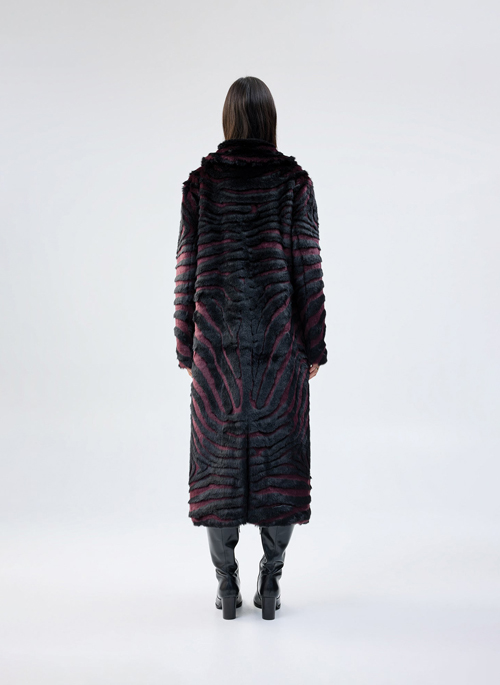 The Gonzo Coat fuses bold patterns with understated tailoring. Jacquard tiger faux fur and snap hook closures offer a refined take on statement dressing for the modern minimalist.