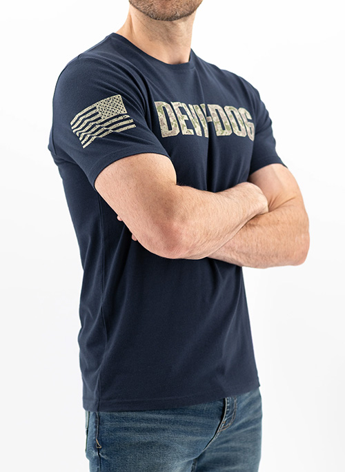 A shot of camo and American pride is all you need to represent the culture of Devil-Dog®. Cut from ultra-soft cotton jersey, it’s designed for all-day comfort and laid-back breathability.Details: