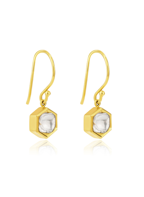 These diamond and 18ct gold hexagon earrings are the perfect touch of understated glamour. The Chelsea Gold Collection is a unique assortment of luxury 18ct jewellery in yellow gold, white gold, and rose gold with diamonds, emeralds, sapphires, pearls and precious gemstones. Elegant classics with a twist.